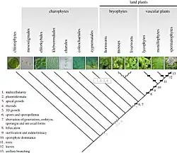 Los briófitos (musgos, hepáticas y antocerotas) tienen una fase de gametofito dominante de la que depende el esporófito adulto para su nutrición. El embrión esporófito se desarrolla mediante la división celular del cigoto dentro del órgano sexual femenino o arquegonio y, por lo tanto, en su desarrollo temprano es nutrido por el gametofito.[10] Debido a que esta característica del ciclo de vida de crianza de embriones es común a todas las plantas terrestres, se las conoce colectivamente como embriofitas.