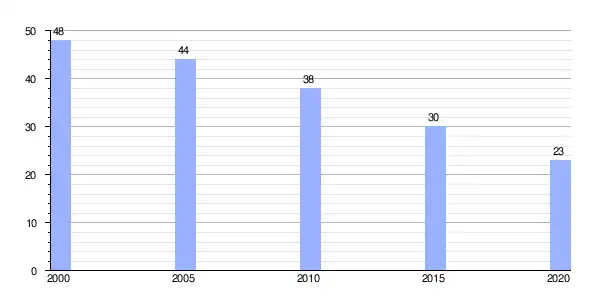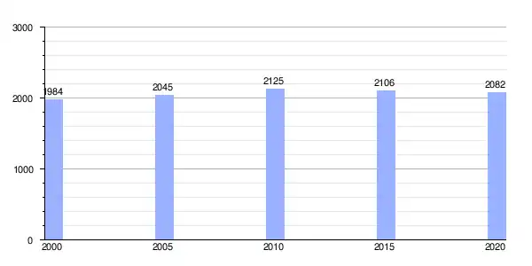 | Gráfica de evolución demográfica de Esporiz (aldea) entre 2000 y 2020 |