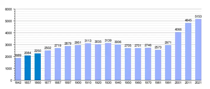 | Gráfica de evolución demográfica de Esporlas[2] entre 1842 y 2021 |