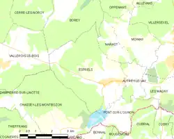 - ↑ INSEE, Datos de población para el año 2012 de Esprels (en francés).