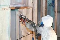 "Espuma en espray" es también un término informal utilizado para referirse a varios materiales de espuma plásticos que se utilizan en la construcción para proporcionar aislamiento térmico y la infiltración de aire. Poliuretano y polisocianurato son los dos tipos de espuma utilizada en esta aplicación.