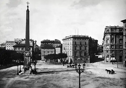 - ↑ Par la topografía antigua del barrio, en particular de la zona de Piazza Vittorio, véase Barrano, Colli, Martines, Roma. Piazza Vittorio Emanuele II. Un nuovo settore degli Horti Lamiani'