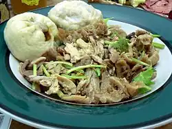 En la cocina china el estómago de cerdo se sirve a menudo salteado con verdura.