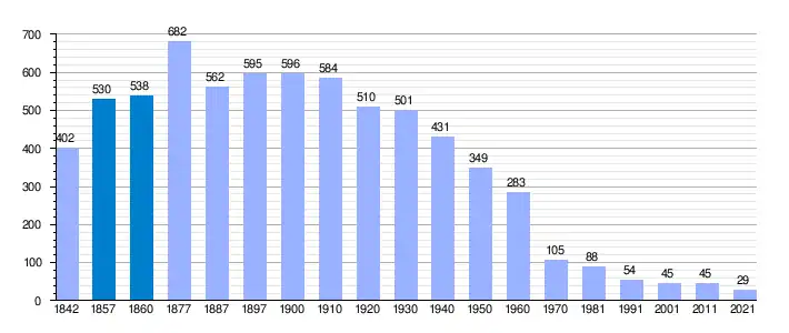| Gráfica de evolución demográfica de Establés[2] entre 1842 y 2021 |