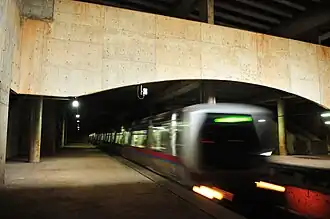 Aunque el metro pasa por la zona, y cuente con el espacio destinado a la construcción de la estación, todavía no hay previsiones para su conclusión. Actualmente la estructura de hormigón está concluida, estando pendientes de ser concluidos los túneles bajo el Eje De transporte, el acabado y la instalación de los equipamientos.[1]