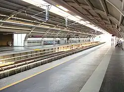Estación elevada, con hall de distribución en el nivel del suelo, estructura en concreto aparente, plataformas laterales en estructura mixta de concreto y metálica, con techado de estructura metálica en forma de pórtico elíptica y tejas de aluminio tipo sándwich. Posee accesos para discapacitados físicos e integración con Terminal de Ómnibus urbanos.[1]