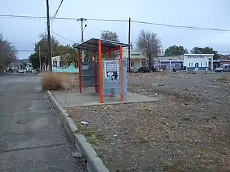 Se accede al plataforma mediante un cordón. La estación no incluye carteles informativos sobre el servicio y la combinaciones posibles. La parada está cubierta y cuenta con asientos de madera.