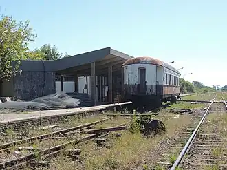 Antiguo vagón de mantenimiento de la empresa ALL, abandonado en la estación. | ||||||||||||||||
