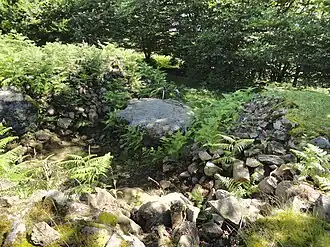 • En 1921: "Losa d" de 0,90 x 0,90 x 0,45 metros de naturaleza ofita, ubicada al este del centro del túmulo.