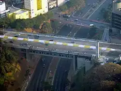 ![]() Vista aérea de la estación, construida debajo de un viaducto | |||||||||