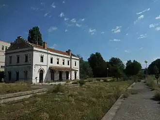 La construcción de la línea Soria-Castejón estaba prevista en el Plan de Ferrocarriles de Urgente Construcción que promulgó la dictadura de Primo de Rivera.[2] La construcción del trazado se inició en 1927,[3] si bien los trabajos se acabaron alargando debido a las vicisitudes de la época. La línea fue inaugurada oficialmente en septiembre de 1941.[4] Las infraestructuras pasaron a integrarse en RENFE, creada ese mismo año como consecuencia de la nacionalización de la red ferroviaria de ancho ibérico. El municipio de Ágreda llegó a contar con una estación de ferrocarril propia, que disponía de un edificio de viajeros, muelle-almacén de mercancías y varias vías de servicio. La estación se mantuvo operativa hasta que en 1996 se cerró a la circulación el trazado comprendido entre Soria y Castejón debido al escaso tráfico que movía, quedando sin servicio las infraestructuras.