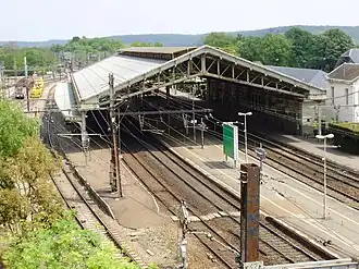 Dispone de tres andenes, uno lateral y dos centrales y de cinco vías, además de otras vías de garaje. Todos ellos están recubiertos por una amplia marquesina. Un paso subterráneo permite acceder a los diferentes andenes.