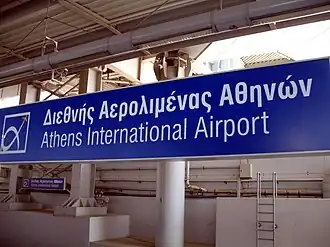 La estación de tren del aeropuerto internacional de Atenas es un complejo de dos estaciones de tren en el municipio de Spata-Loutsa. La primera estación es una estación del tren suburbano, en la línea de Kiato - Aeropuerto, que es Terminal y la segunda es la estación de Metro de Atenas, en la línea 3, que también es un Terminal. La distinción entre las dos estaciones de hecho es estándar, después esencialmente estos dos canales es uno cuyas dos líneas usando el tren suburbano y una línea del Metro de Atenas. Debe su nombre al Aeropuerto Internacional Eleftherios Venizelos, que sirve.