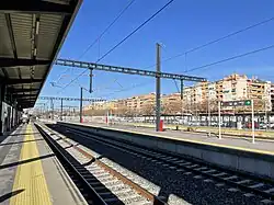 La playa de vías tiene una dimensión mucho más considerable que los edificios, siendo el total de la estación de aproximadamente 84.000 metros cuadrados.[19]​ Normalmente, el tráfico se organiza utilizando un reducido número de vías de todas de las que dispone la estación, siendo 3 las vías dedicadas a trenes de viajeros. El paso entre andenes se realiza mediante un paso subterráneo no adaptado a personas de movilidad reducida.