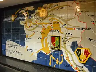En la estación también se puede observar un amplio mural dedicado a la Reconquista de Francia durante la Segunda Guerra Mundial que protagoniza El primer ejercito francés - Rhin et Danube. En este, un mapa muestra los diferentes movimientos de tropas hasta lograr la reconquista del país.