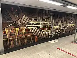 En el vestíbulo de la estación se encuentra el mural cerámico «Formas en el Espacio» del artista Eladio García de Santibáñez (E. G. de Santibáñez), quien ya cuenta con 18 murales y esculturas en diversas estaciones del suburbano madrileño.