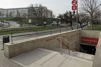 Entrada estación 12 de Octubre, al fondo nuevo edificio del Hospital 12 de Octubre. | |||||||||||||||||||||||||||||||||||||||||||||||||||||||||||||||||||||||||||||||||||||||||||||