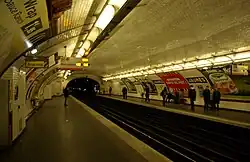 La estación está diseñada en bóveda, su revestimiento, bastante deteriorado es similar al de la estación de la línea 5. Su iluminación también ha sido renovada empleando el modelo vagues. En cuanto a la señalización, si bien usa el mismo soporte, la tipografía elegida en este caso es la Motte. Por último, los asientos son rojos, individualizados y de tipo Motte.