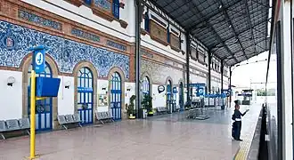 Jerez de la Frontera es una estación de ferrocarril de carácter monumental situada en la ciudad española de Jerez de la Frontera. Es un edificio de gran valor arquitectónico, lo que ha provocado que se trámite su protección como Bien de Interés Cultural.[1] Históricamente, Jerez de la Frontera llegó a ser un nudo ferroviario en el que se bifurcaban varias líneas férreas: Sevilla-Cádiz, Jerez-Bonanza o Jerez-Arcos de la Frontera. A eso se suma el hecho de que la estación tradicionalmente ha tenido un importante tráfico de pasajeros y mercancías, siendo una de las principales estaciones de la región andaluza.