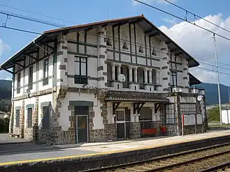 Se sitúa al este del núcleo urbano. Su edificio para viajeros siguiendo el esquema habitual de las estaciones de este tramo es una clara muestra de la arquitectura local. Es de base rectangular, dos alturas y disposición lateral a las vías. Está construido en piedra y recubierto con un amplio tejado en pico de dos vertientes. Dispone de dos andenes laterales a los que acceden dos vías. El andén opuesto cuenta también con un pequeño refugio. La comunicación de uno a otro se realiza a nivel. En el exterior existe un aparcamiento habilitado para 15 plazas repartidas entre dos zonas que se construyó en 2011.