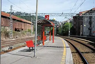 Se sitúa al suroeste del municipio. El edificio de viajeros es una clara muestra de la arquitectura local. Es de base rectangular, de dos alturas, en piedra y está recubierto por un amplio tejado en pico de dos vertientes desiguales. Dispone de dos andenes uno lateral y otro central y de cinco vías.