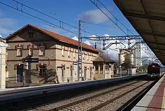 Está ubicada al oeste del núcleo urbano, al final de la calle Berruguete. Fiel al estilo original de las estaciones de este tramo el edificio para viajeros es una estructura de gran envergadura, de dos pisos de altura revestido de piedra. Está cubierto con un amplio tejado de dos vertientes usando teja cerámica. Los numerosos vanos lucen todos arcos adintalados y una clave central resaltada. En uno de sus extremos cuenta con una ventana mirador característica de la arquitectura ferroviaria española. En total dispone de siete vías numeradas.[1] La vía 2 accede al andén lateral mientras que las vías 1 y 3 lo hacen al andén central cubierto. Sin acceso a andén quedan las vías 5, 7 y 9.