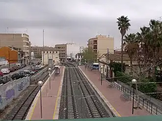 La estación dispone de tres vías destinadas a la parada de trenes que prestan servicio de viajeros, utilizándose una de ellas como apartadero. El andén este se utiliza para los trenes que circulan con dirección norte y el andén oeste se utiliza para los que circulan en dirección sur. Para cruzar del andén este al oeste es necesario cruzar las vías por un paso a nivel.
