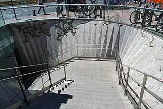 Dispone de dos accesos, uno en la intersección de la plaza de España con la calle del Pintor Benedito y otro en la intersección de dicha plaza con la calle de San Vicente Mártir. El ascensor se encuentra en este último.