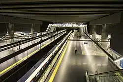 Se trata de una estación estructurada en dos niveles. En el nivel -1 se encuentran los andenes de la línea 10, y en el nivel -2, los andenes de la línea 12, perpendiculares entre sí. En ella se encuentra una de las sedes del Bibliometro del Metro de Madrid.
