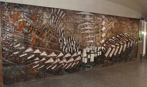 El mural "Formas en el Espacio" que se encuentra en uno de los accesos a la estación es obra del artista Eladio García de Santibáñez (E.G. de Santibáñez). Mural cerámico vitrificado con relieve y barro refractario cocido a gran fuego. Dimensiones: 7m de longitud y 2,70m de altura. (www.santibanez-art.com)[6]