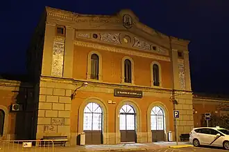 Está situada al norte del núcleo urbano. Cuenta con un edificio para viajeros de amplias proporciones y diseño clásico formado por un cuerpo central de dos alturas y dos anexos laterales de planta baja. La gran mayoría de vanos del conjunto están adornados por arcos de medio punto. Dispone de dos andenes, uno lateral y otro central al que acceden tres vías. Otras tres vías carecen de andén.