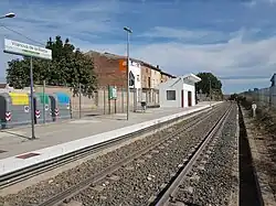 Se sitúa al este del centro urbano. Originalmente se situaba en una posición más alejada del núcleo, a 1 km al noreste. Tenía tres vías, la general, una derivada a la derecha y una vía muerta conectada por el sentido de Lérida para mercancías. Había un andén a la izquierda de las vías con el edificio de viajeros de dos plantas con un muelle cubierto de mercancías. En plena Guerra Civil, en diciembre de 1936, se construyó un andén efímero en el centro de la población, donde décadas más tarde se ubicará el apeadero actual. Los edificios de la antigua estación se derribaron en 2000.