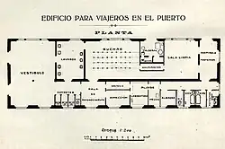 Ordenado por la Dirección General de Obras Portuarias el 16 de noviembre de 1921, fue proyectado por Álvaro Bielza Romero y construido y equipado en 1922 para Estación Sanitaria, aseo y desinfección del personal portuario, la tropa y rifeños que trabajaban recolectando en Argelia, contando con una cámara de sulfuración, una sala con 36 duchas, peluquería, laboratorios, vestíbulo, sala de reconocimiento, cuartos de baño, todo con suelo asfaltado y las paredes recubiertas de azulejo blanco biselado. Al poco tiempo perdió esa función y tras estar abandonado, fue remodelado en 1944 para ser sede del Real Club Marítimo de Melilla ampliándose por su parte trasera según proyecto de José Ocho y Benjumea, siendo usada a partir del 12 de agosto, aunque el 13 será inaugurado por el General Jefe del Ejército del Maestrazgo, Múgica, siendo bendecido por Enrique de Umbrete[4]
