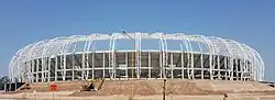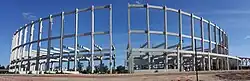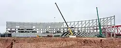 En septiembre se terminó la construcción de todas las tribunas.[39] Al mes siguiente se finalizó la instalación de la estructura metálica del techo y se puso en marcha la construcción de los vestuarios y las escaleras de acceso para el público. Alrededor del estadio se construyó un talud con una altura de 7 metros, por el cual el público accederá a las tribunas subiendo las escaleras.[40]