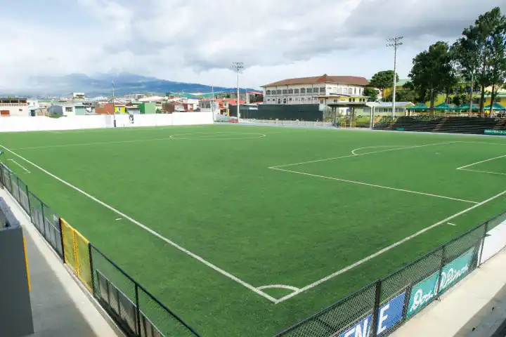 La gramilla artificial adquirió longitudes reglamentarias de 105 metros de largo por 70 metros ancho y el estadio tiene capacidad para unos 4.000 a 4,500 espectadores.
