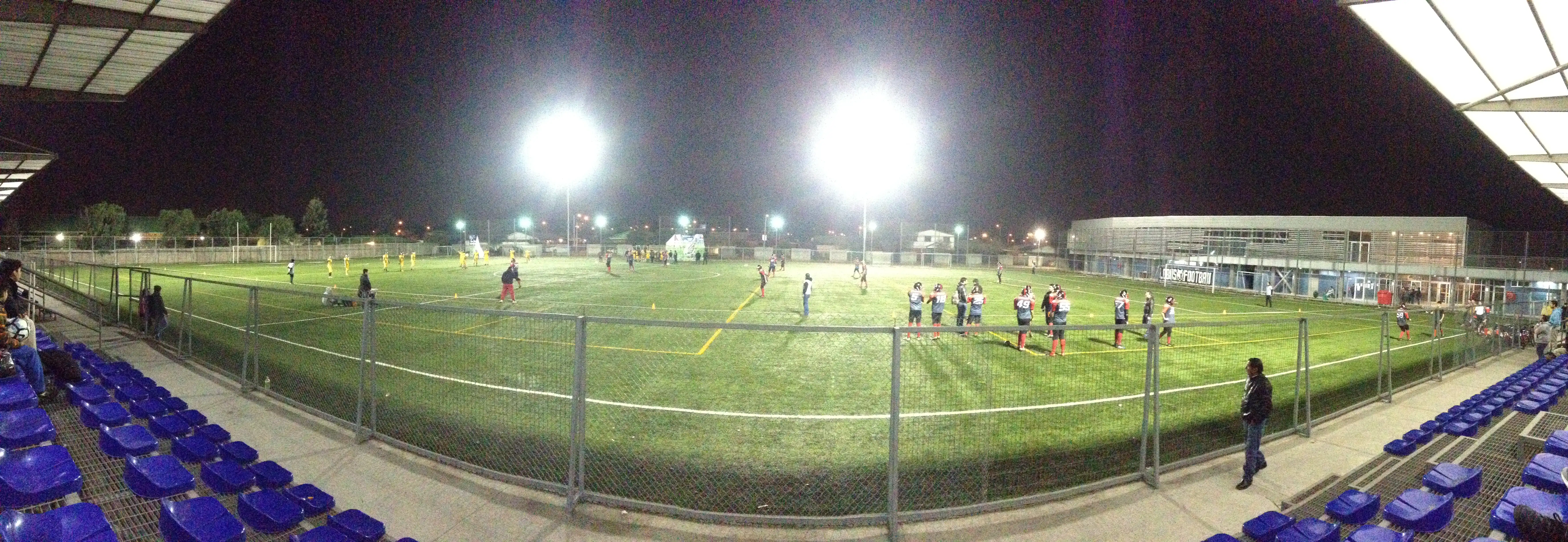 ![]() Panorámica tomada desde la gradería en un partido de fútbol americano entre el equipo local Lobos de Cerrillos vs Halcones de La Florida | ||