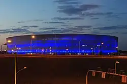La forma del estadio se destaca por el diseño innovador de sus muros exteriores. El edificio está cubierto por una malla de fibra de vidrio recubierto con teflón. La malla se ancla por anillos de acero colocadas alrededor de todo el cuerpo del estadio. La cubierta se caracteriza por su ligereza y transparencia de la estructura masiva. Los colores de las paredes exteriores del estadio se puede cambiar con un sofisticado sistema de iluminación.[6] Los puestos de venta están situados en la fachada semi-transparente.
