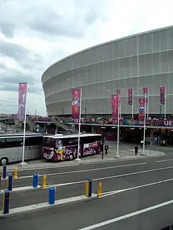 El concepto arquitectónico también incluye un paseo al aire libre alrededor del estadio, llamado "la explanada" con una superficie total de 52 753 m². La explanada da acceso al interior del estadio desde dos direcciones. Desde el sur, que conduce en la calle Lotnicza, donde un sistema integrado de plaza de Park & Ride se está construyendo con una parada de tranvía, una estación de tren, y un estacionamiento al aire libre; y desde el norte, la explanada va desde el intercambiador norte de transporte público con paradas de tranvía y autobuses y un aparcamiento para autobuses.