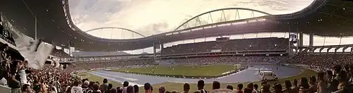 En un principio el estadio pertenecía al gobierno y lo tenía como propiedad municipal, pero más tarde fue licitado a Botafogo para su administración y explotación comercial.[1]​ el estadio fue construido para albergar competiciones de atletismo y fútbol durante los Juegos Panamericanos de 2007.