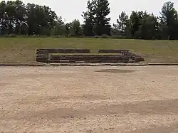 El estadio del sitio arqueológico de Olimpia (Grecia) está situado al este del santuario de Zeus. Era el lugar donde se celebraban muchos de los eventos deportivos de los Juegos Olímpicos de la Antigüedad.
