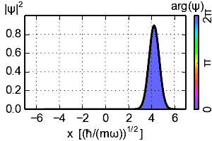 Donde son constantes (una constante de normalización, el centro del paquete de ondas, su ancho, y el valor esperado de su momento). La nueva característica relativa a a un estado coherente es el valor libre de anchura