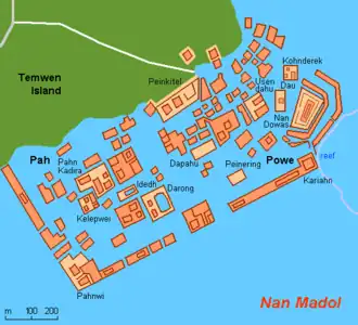 - ↑ a b Hanlon, David L (1988). University of Hawaii Press, ed. Upon a Stone Altar: A History of the Island of Pohnpei to 1890. Pacific Islands Monograph 5. p. 13–25. ISBN 0-8248-1124-0. Consultado el 1 de enero de 2012.