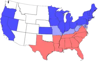 En 1804 (incluyendo, Nueva York (1799), Nueva Jersey (1804)), en todos los estados del norte se había abolido la esclavitud o habían tomado medidas destinadas a reducirla gradualmente.[4] En el sur, Kentucky fue creado como un estado esclavista a partir de Virginia (1792), y Tennessee se había creado como un estado esclavista de Carolina del Norte (1796). En 1804, antes de la creación de nuevos estados de los territorios occidentales federales, el número de estados esclavistas y estados libres era de ocho cada uno. En el uso popular, la división geográfica entre el esclavo y estados libres se llama la línea Mason-Dixon.
