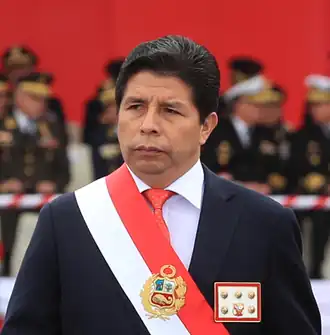 El intento de autogolpe de Estado en Perú[82][83][84][85][86][87][88][89] fue un intento de ruptura del orden constitucional realizado el 7 de diciembre de 2022 por el entonces presidente Pedro Castillo, quien, ante las declaraciones de Salatiel Marrufo (ex jefe de asesores del Ministerio de Vivienda) realizadas ante la Comisión de Fiscalización del Congreso sobre la presunta entrega de 50 mil soles mensuales a su persona para mantener en el cargo de ministro de vivienda a Geiner Alvarado y el inminente tercer proceso de destitución en su contra, que iba a debatirse aquel día por presuntos actos de corrupción y escándalos que lo involucraban directamente a él y a su entorno,[90][91][92] se dirigió a la nación en un mensaje televisado en el que anunció:[93][94][95]