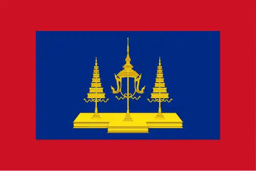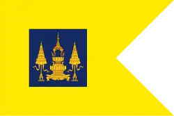 1979 - | Estandarte para miembros con una posición elevada en la Casa Real (normalmente la madre del Rey) | Posee la misma forma y proporciones que el estandarte usado por la reina pero cuenta con un cuadrado azul en su centro, en el que aparece representada la Corona Real Tailandesa sobre dos cuencos sobre una mesa flanqueada por dos parasoles reales. |