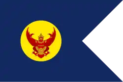Un paño de forma cuadrada de color blanco con un escudo con los colores de la bandera nacional y timbrado con el escudo tailandés o Garudá. El escudo está situado en el centro de la bandera. |