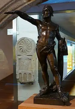 En 1902 inicia Eduardo Barrón gestiones desde Madrid, para que la estatua sea concedida finalmente a la Diputación Provincial de Zamora y se convierta en un monumento público, en agradecimiento del pensionado que subvencionó la Diputación en Roma. Inicialmente la ciudad no mostró interés. Finalmente se eligió la plaza actual frente al Palacio de los Condes de Alba y Aliste. El pedestal de piedra granítica se trasladó desde las canteras de Arcillo empujada en dos piezas por un carro tirado por bueyes.[5] El ariete que reposa en su parte inferior data de esta época en la que se instala en el medio de la plaza. Se colocó a finales del 1903, sin realizar apertura oficial, unos transeúntes que pasaban la descubrieron el 12 de enero de 1904.[1] En 1971 se desplaza el monumento del centro de la plaza, y se coloca en una de sus esquinas. en su lugar se plantaron unos plátanos.