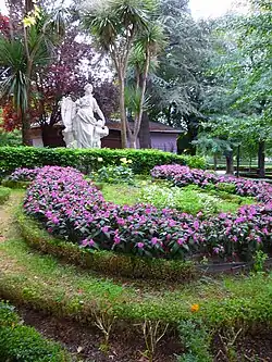 Antigua e inicialmente se había colocado en la Plaza del Castillo sobre una fuente situada en el lugar que ahora ocupa el quiosco de música. Después, en 1913, fue colocada en la Plaza de San Francisco, frente a las escuelas, donde estaría poco tiempo hasta que, final y definitivamente, en 1927 se colocó en el jardín de Taconera tras ser remplazada por el monumento a San Francisco de Asís.
