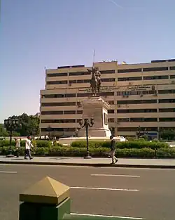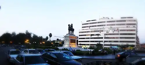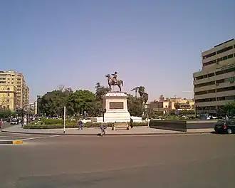 ![]() Vista general de la Plaza de la Ópera de El Cairo. En el centro de perfil , la estatua ecuestre de Ibrahim Bajá. | ||