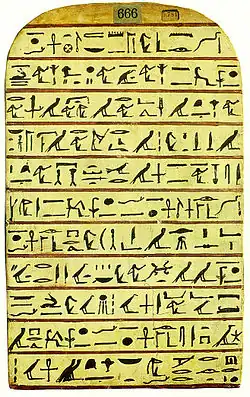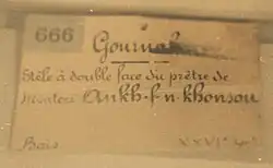 - ↑ Hisham el-Leithy, "Painted Wooden Stelae From Thebes from the 21st to the 26 Dynasties," in Proceedings of the Ninth International Congress of Egyptologists, edited by Jean-Claude Goyon and Christine Cardin. Orientalia lovaniensia analecta 150. Leuven: Uitgeverij Peeters, 2007. 585–594 ; see also Abd el-Hamid Zayed, "Painted Wooden Stelae in the Cairo Museum," Revue d'égytologie 20 (1968), 149–152, and plate 7.